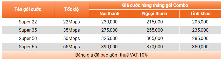 - Các gói combo internet + truyền hình bạn có thể tham khảo: